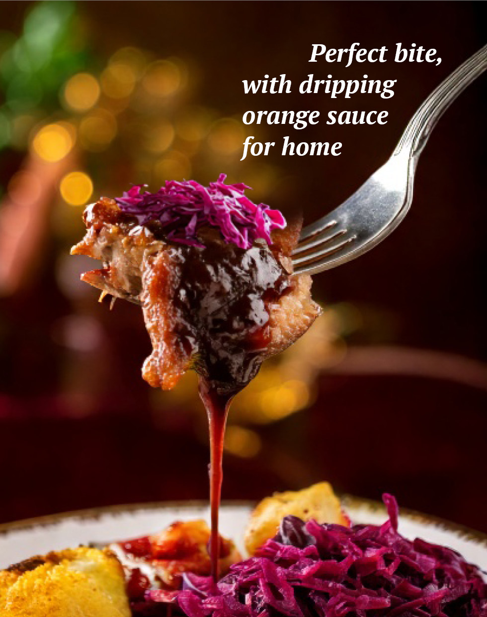 The aroma of crispy goose, festive side dishes, and the quality of our cuisine that you know from your visits with us.